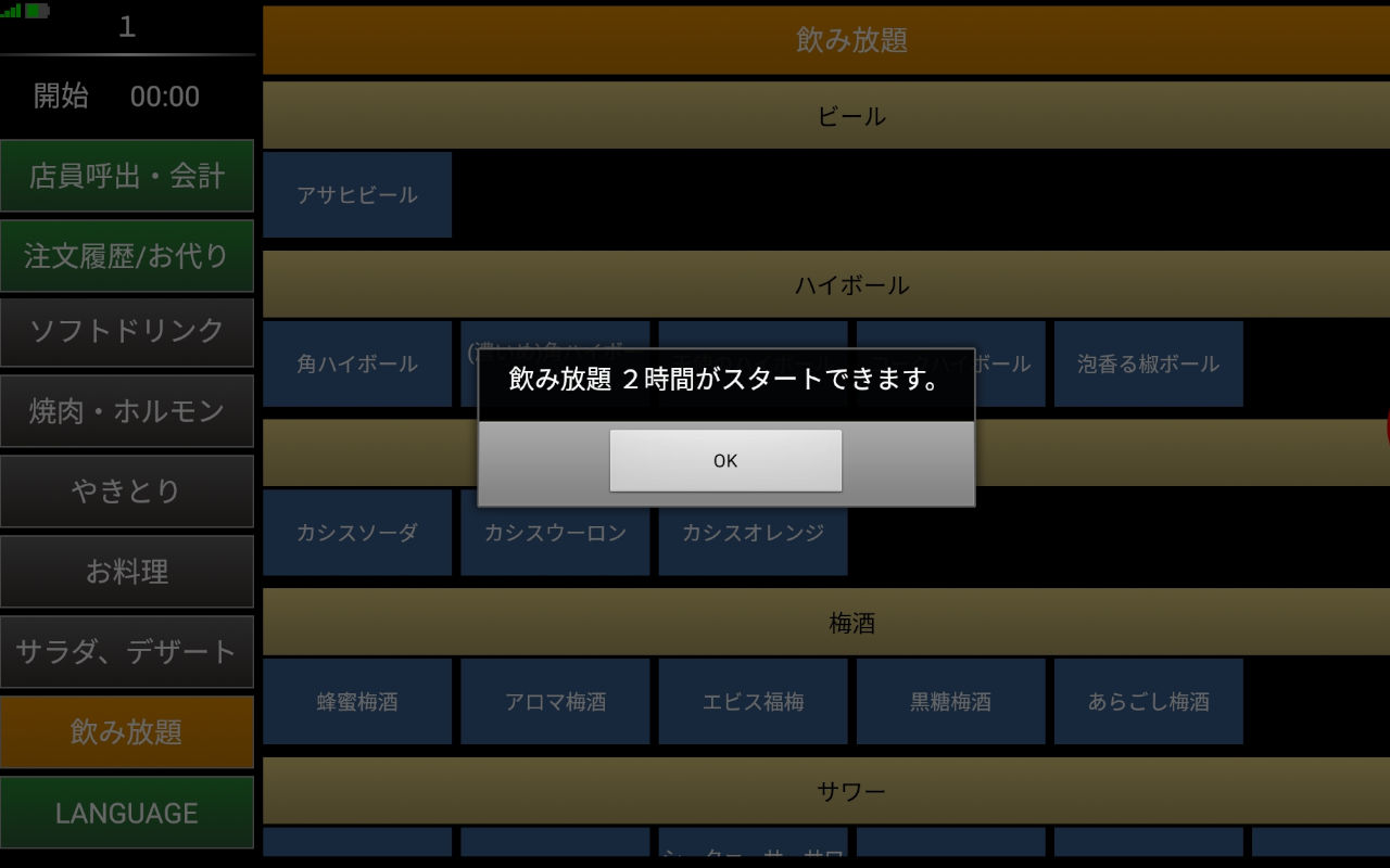 食べ飲み放題機能に加え、一定時間や人数に応じての注文制限が可能です。ラストオーダー案内や対象外メニューへの注意機能もございます。