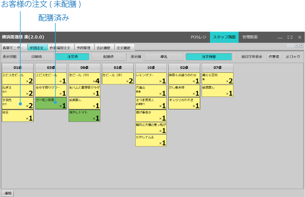 現在までの注文履歴、合計金額、配膳状況をみることが出来ます。